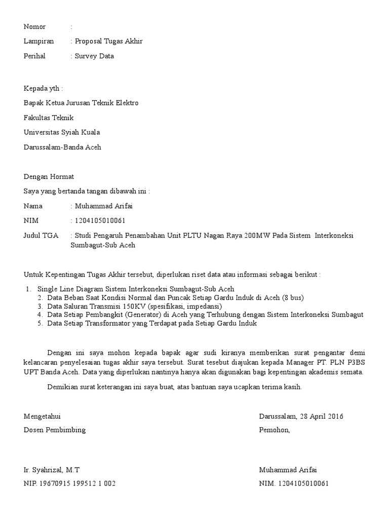 Contoh Surat Permohonan Permintaan Data Perusahaan Untuk Skripsi