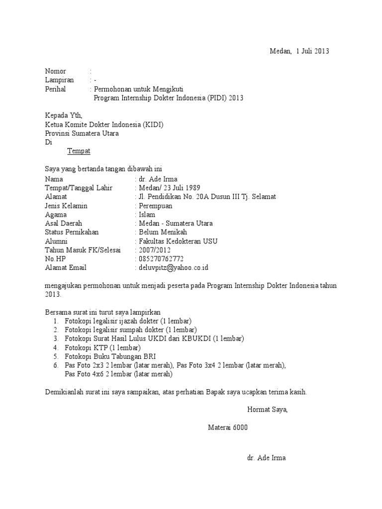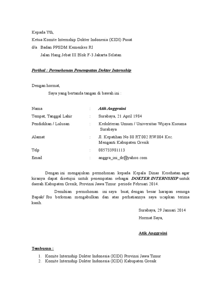 Contoh Surat Permohonan Penempatan Dokter Internship Surat 0
