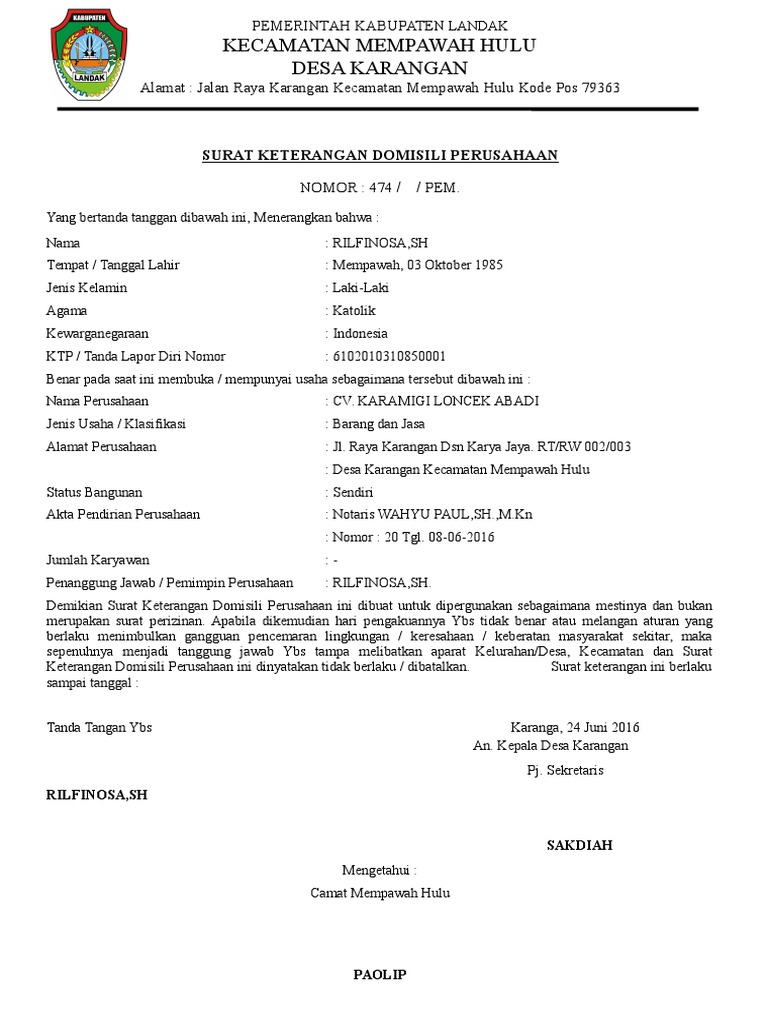 Surat Keterangan Domisili Cv Jayapura Pdf Document