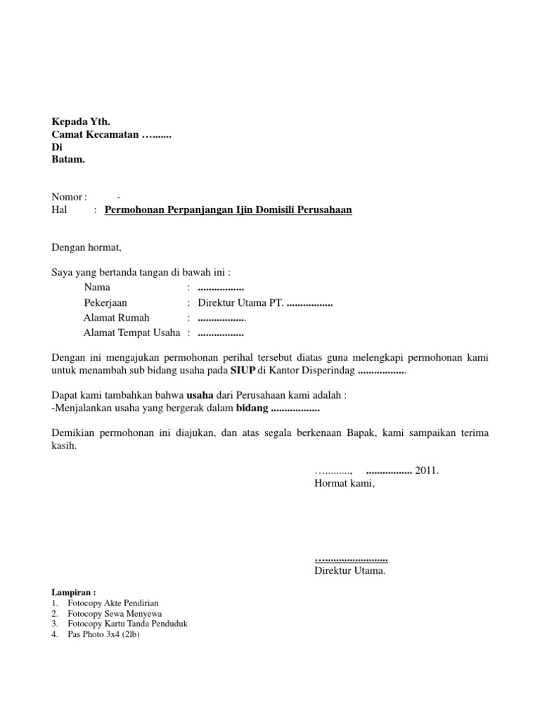 Contoh Surat Permohonan Domisili Perusahaan Ke Kelurahan Modif P