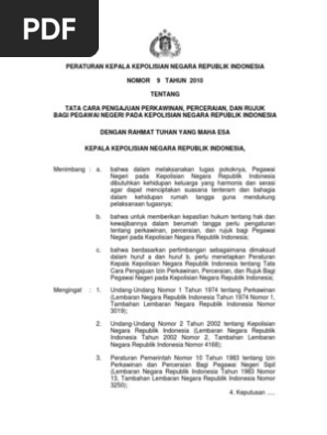 Perkap No 9 Th 2010 Ttg Nikah Cerai Rujuk Agt Polri