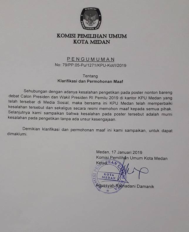 Kpu Medan Minta Maaf Salah Tulis Nama Capres Cawapres Nomor Urut 01