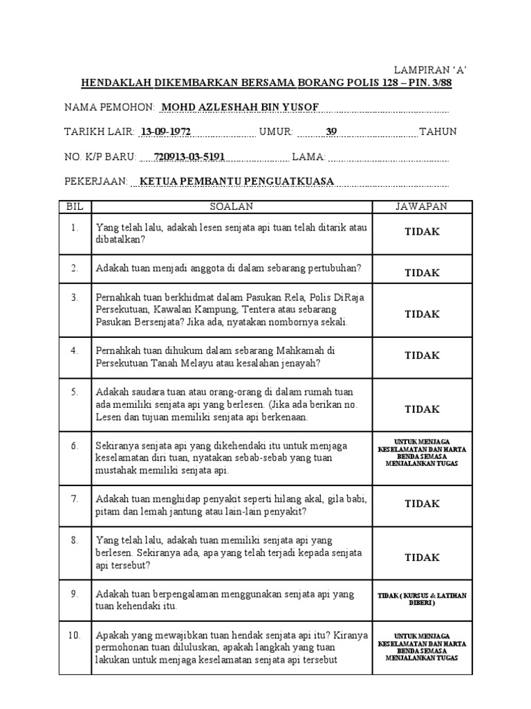 Borang Tukarmilik Senjata Api Isi Doc Document