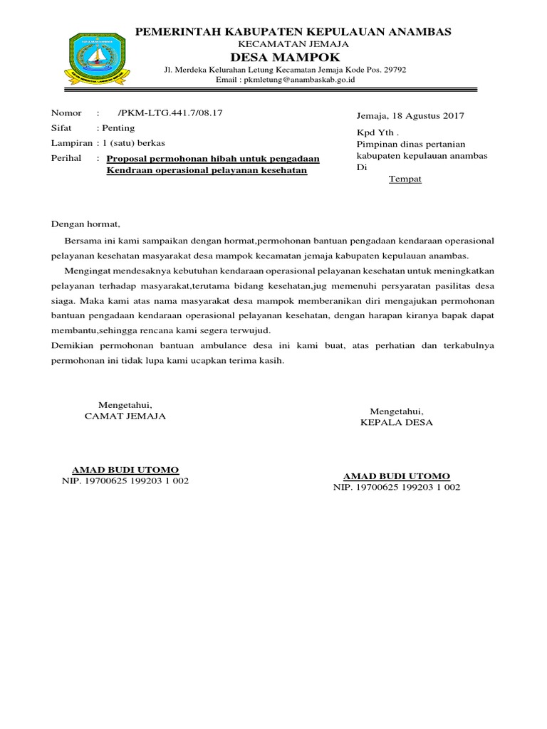 Fotocopy buku tabungan bpd cabang mayong. Namun agar memiliki bukti kuat maka penyerahan hibah itu harus disertai dengan surat hibah yang ditanda tangani oleh pihak pemberi dan penerima hibah. Contoh proposal untuk permohonan pengadaan ambulance desa.