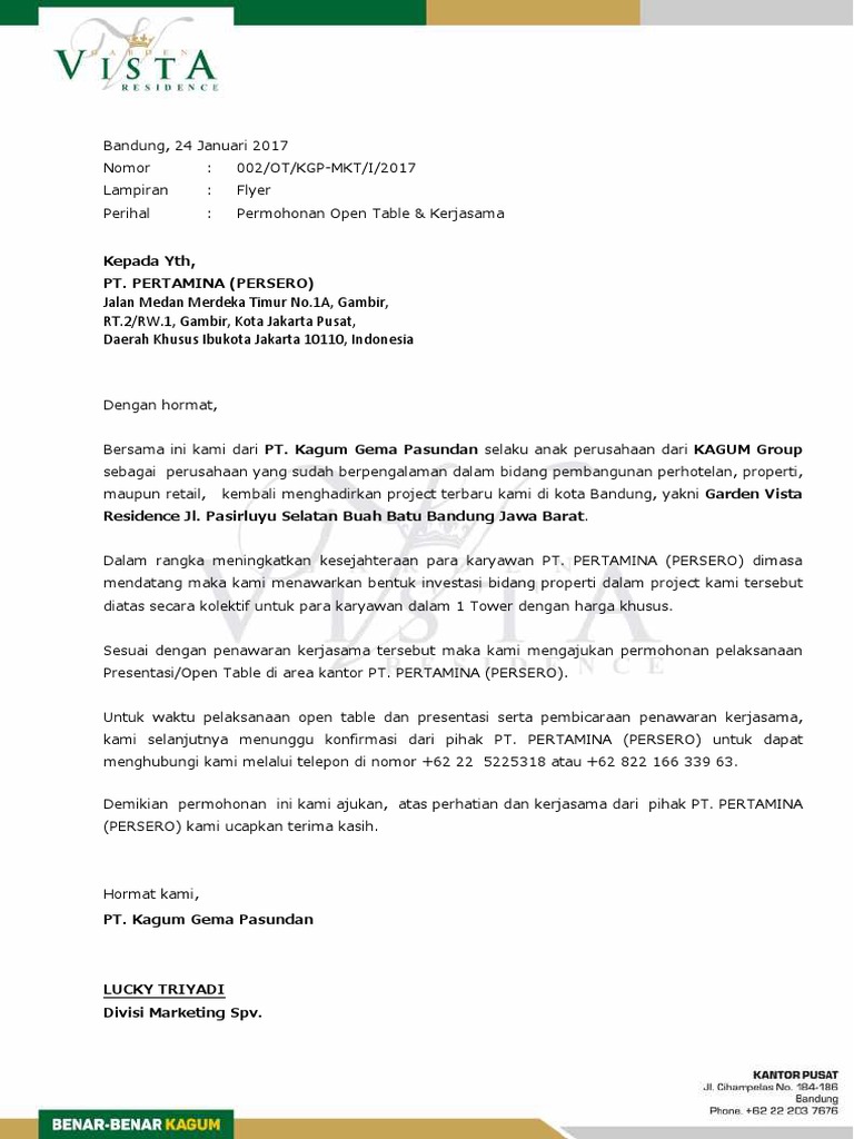 Contoh Surat Pengajuan Open Table Ke Perusahaan Kumpulan Surat
