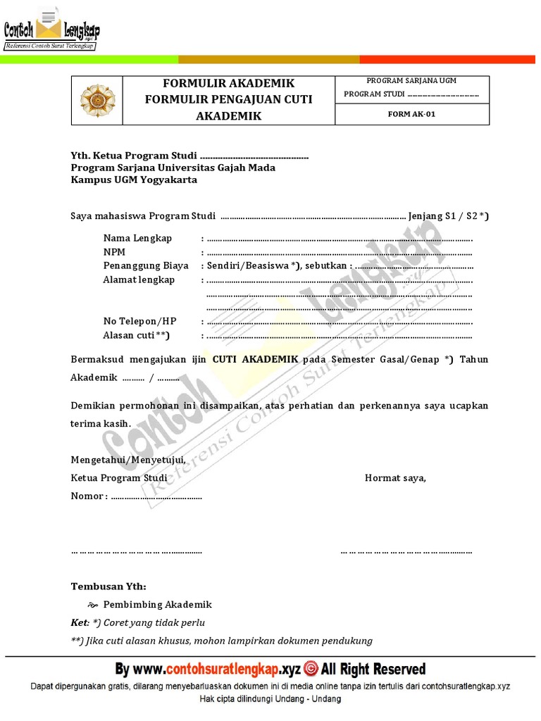 Contoh Surat Permohonan Cuti Kuliah Doc