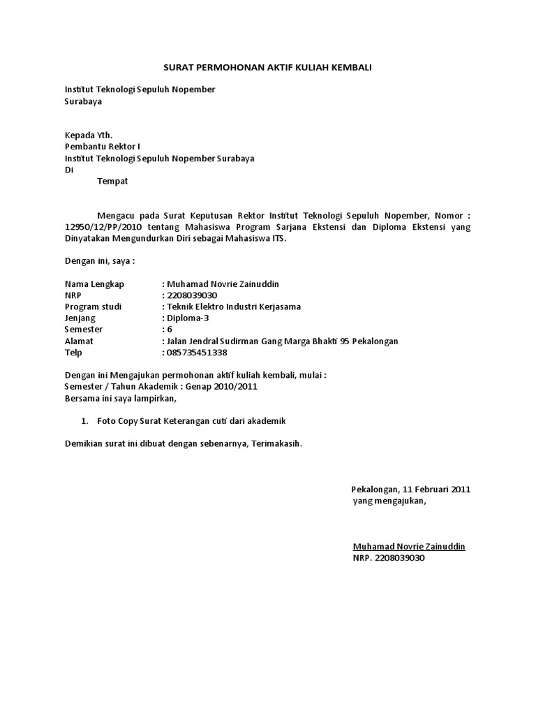 Surat Permohonan Ijin Cuti Kuliah Doc Document