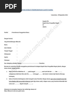 Contoh Surat Permohonan Ganti Nama Contoh Aja