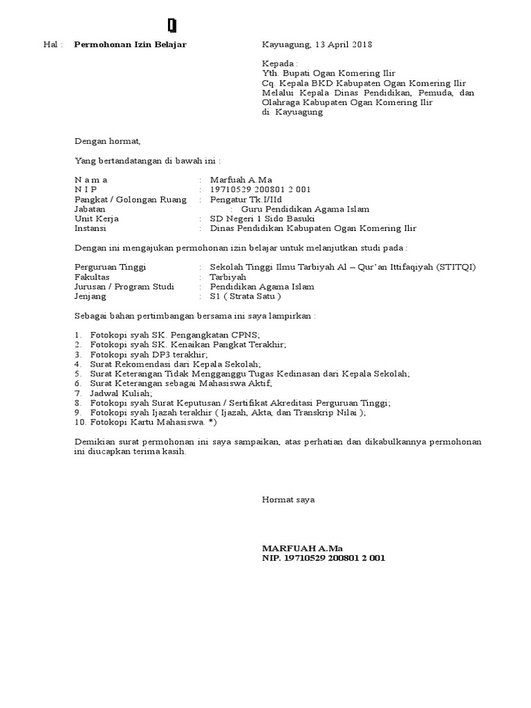 Contoh Surat Lengkap Inilah Contoh Surat Izin Belajar Untuk Pns