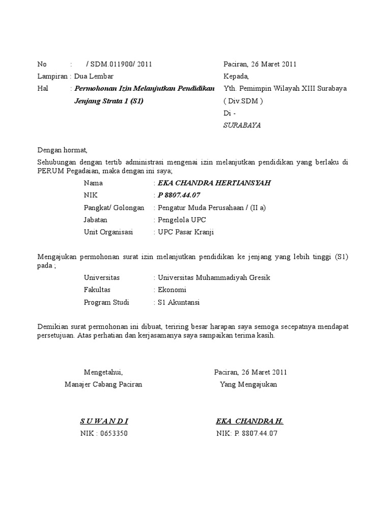 Melanjutkan surat permohonan ijin belajar an slamet mugiyono nip. 75 desa sindangraja kec. Contoh surat pernyataan izin belajar melanjutkan studi kuliah.