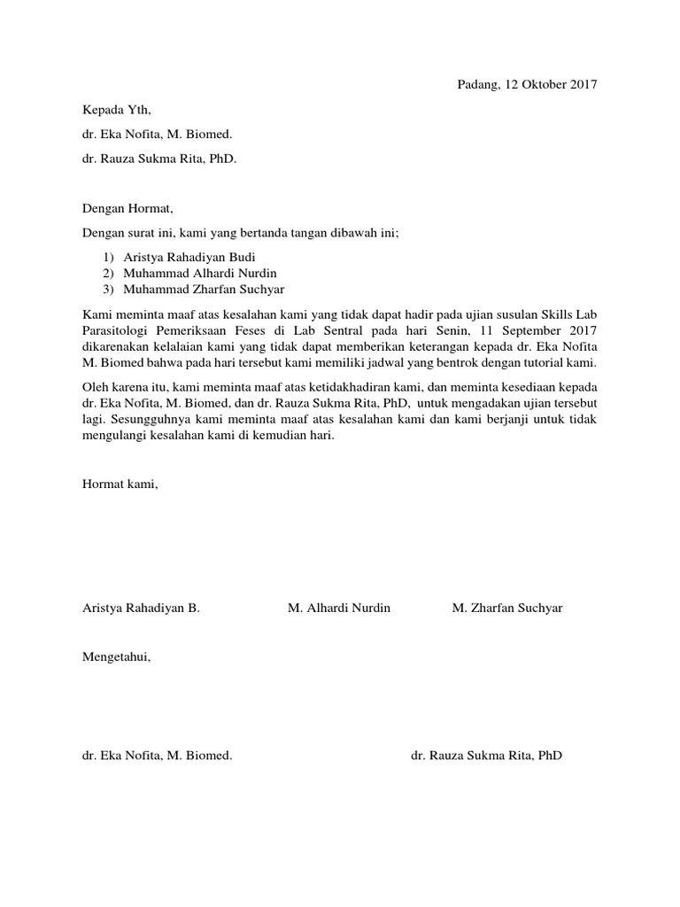 Pdf Surat Permohonan Maaf Murid Di Sekolah Bentuk Formal Reza
