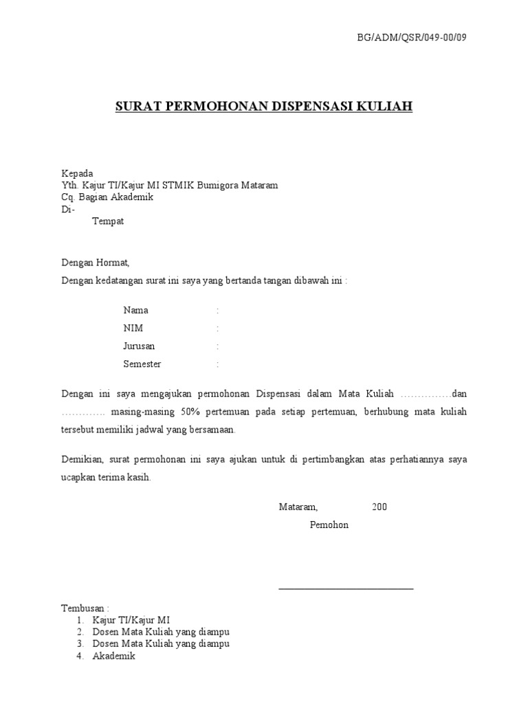 Surat Permohonan Dispensasi Kuliah Doc Doc Document