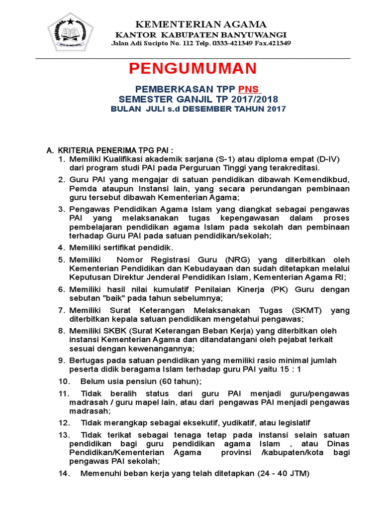 Permohonan Dispensasi Tpg Pai Yg Rasio Kurang Dari 15 1 Pais
