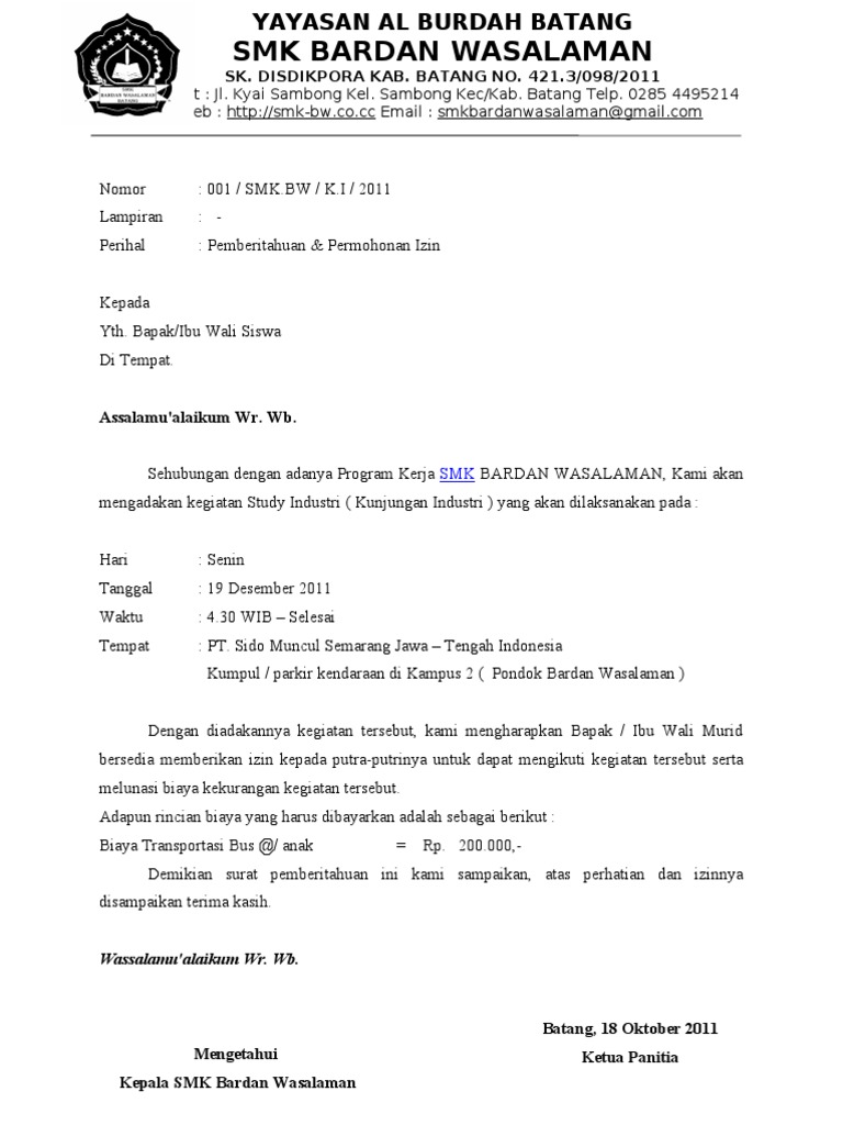 Contoh Surat Pemberitahuan Study Tour Contoh Resource