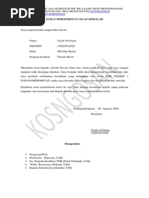 Pdf Surat Permohonan Maaf Murid Di Sekolah Bentuk Formal Reza