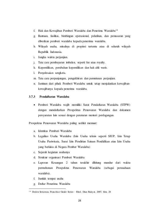 Contoh surat perjanjian pemberian waralaba franchise dari franchisor pemberi waralaba kepada franchise penerima waralaba yang berisi syarat dan ketentuan pemberian waralaba. Friday 27 november 2015 hukum kontrak surat perjanjian franchise. Surat perjanjian perseroan terbatas campuran.