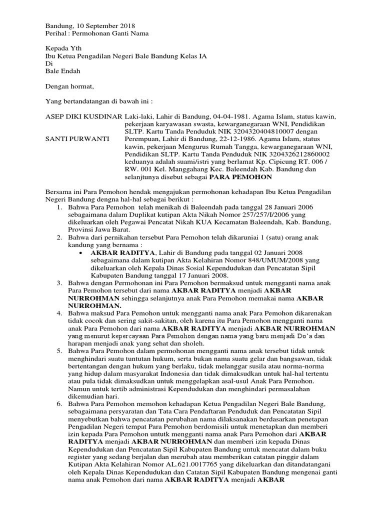 Contoh Surat Permohonan Ganti Nama Di Pengadilan Suratku Net