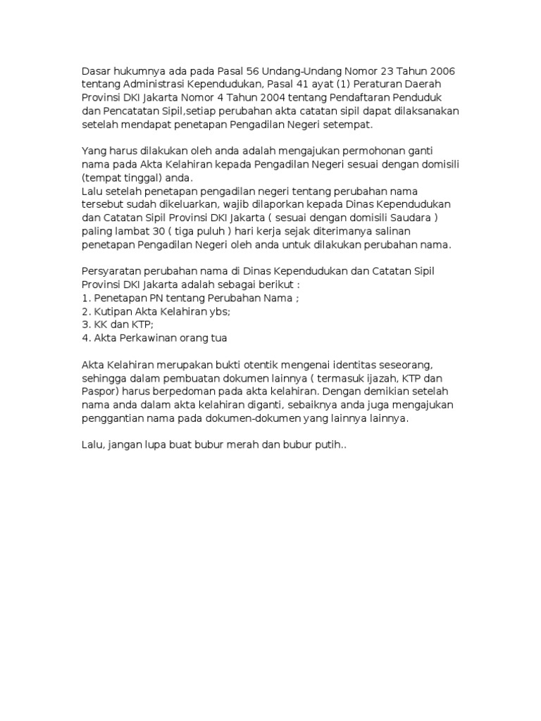 Memerintahkan kepada pemohon untuk melaporkan pencatatan tentang ganti nama tersebut kepada kantor pencatatan sipil kabupaten sukoharjo untuk dicatat dan didaftar sesuai dengan ketentuan perundang undangan yang berlaku. Dalam postingan saya kali ini saya akan berbagi kepada teman teman bagaimana cara membuat surat permohonan ganti nama perubahan pada akte kelahiran kita yang diajukan ke pengadilan negeri setempat. Mayya nurbayanti shobary july 5.
