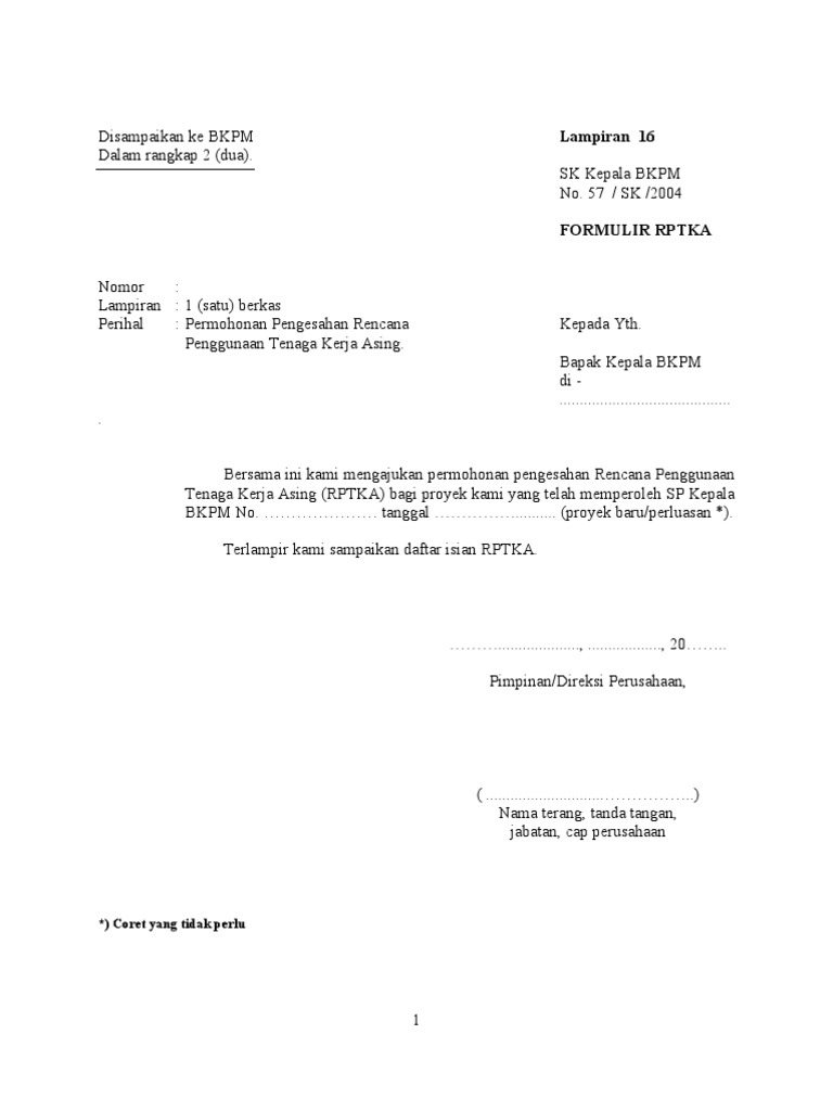 Tabungan tka dengan statement rek. Surat penunjukan tka dan laporan pelaksanaan diklat jika tka adalah staf. Demikian surat permohonan rekomendasi kitas ini kami buat dengan datainformasi yang sebenar benarnya apabila datainformasi yang kami berikan tidak benar atau palsu kami.