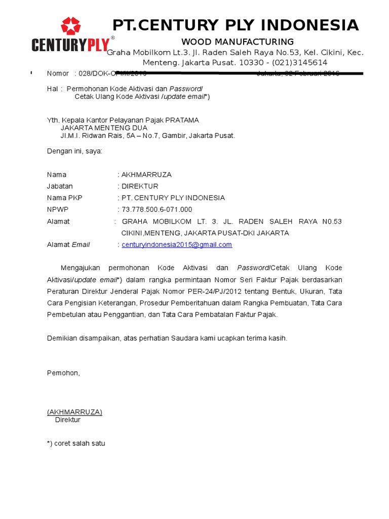 Contoh Surat Permohonan Notifikasi Dari Pimpinan Perusahaan Bagi
