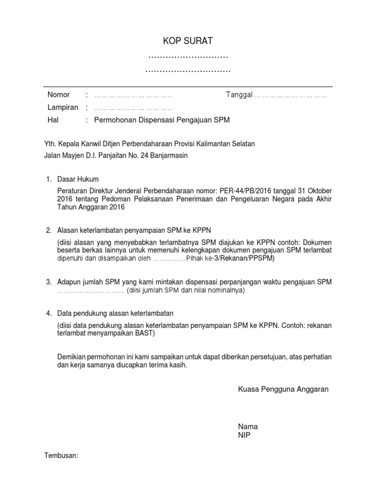Surat Permohonan Dispensasi Pdf
