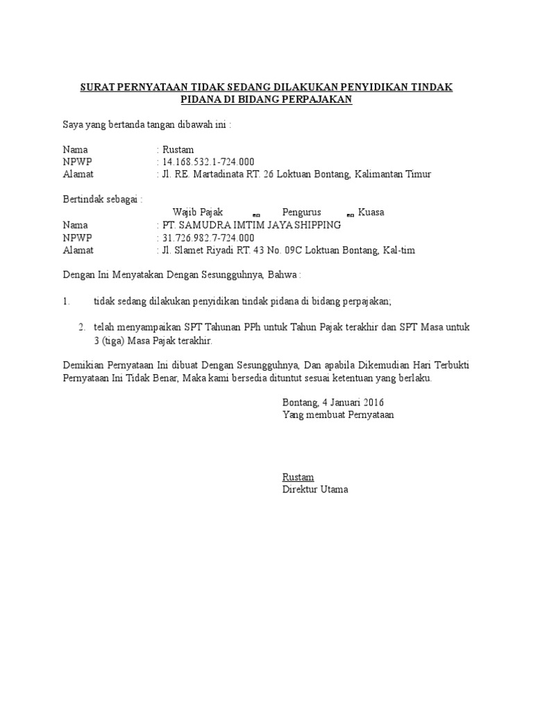 Maksud saya kertas kuning tanda terima dari kpp atas lapor spt. Untuk melaksanakan penyampaian spt tahunan pph badan pt. Demikian surat kuasa ini dibuat untuk dipergunakan sebagaimana mestinya atas kerjasamanya kami ucapkan terima kasih.