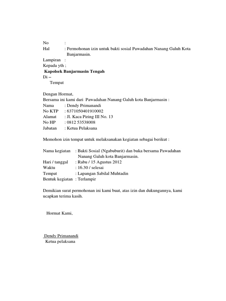 Contoh Surat Permohonan Izin Kegiatan Bakti Sosial Contoh