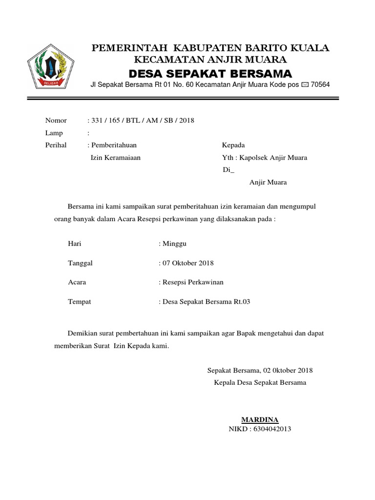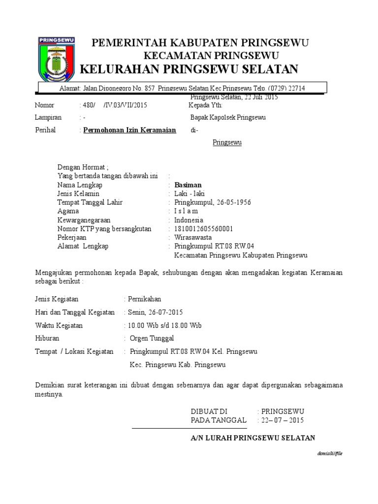 Bapak kapolsek tegal asri. Contoh surat izin keramaian pesta pernikahan. Contoh surat permohonan izin acara.