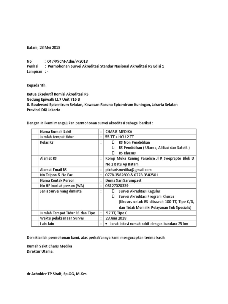 Form Surat Permohonan Survei Akreditasi Snars Edisi 1 Doc