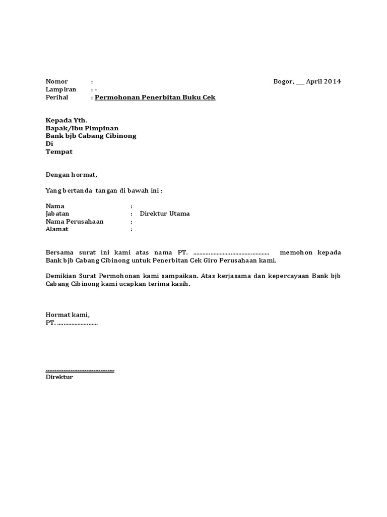 Contoh Surat Permohonan Buku Cek Bank Bjb