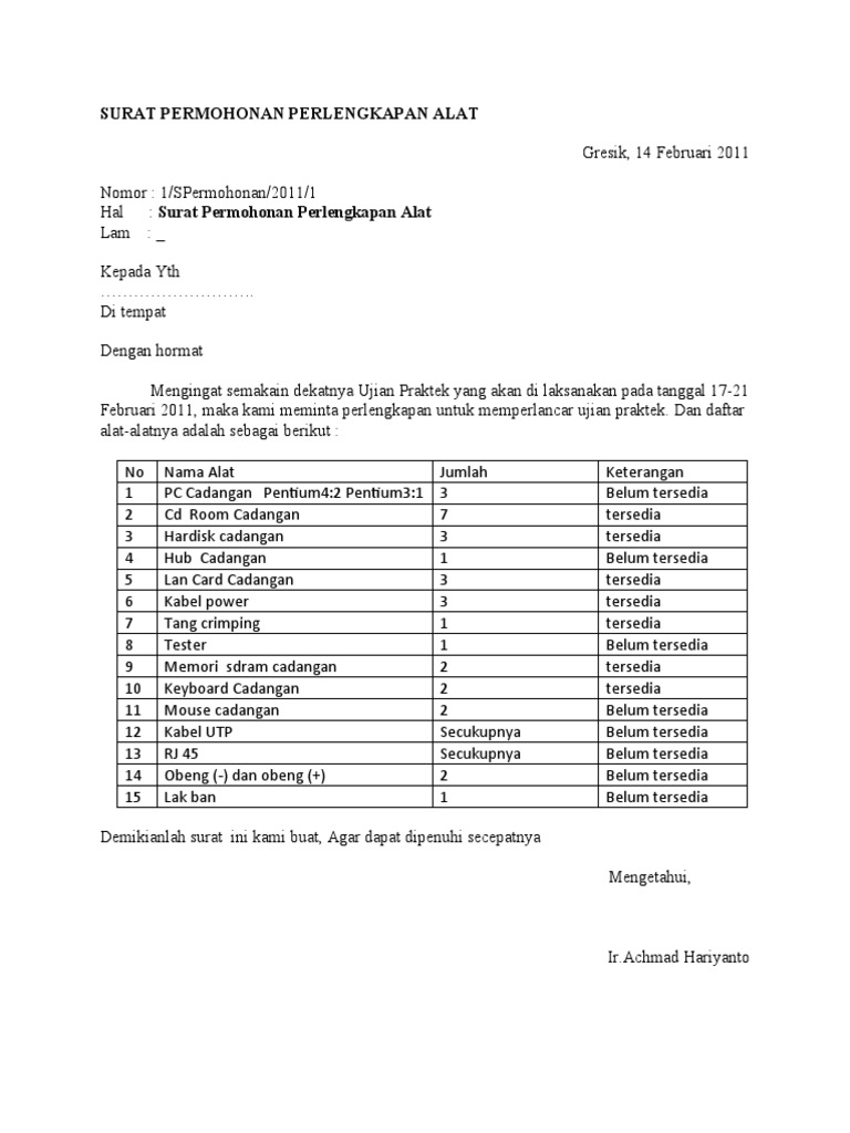 Contoh Surat Permohonan Pengadaan Alat Tulis Kantor Contoh