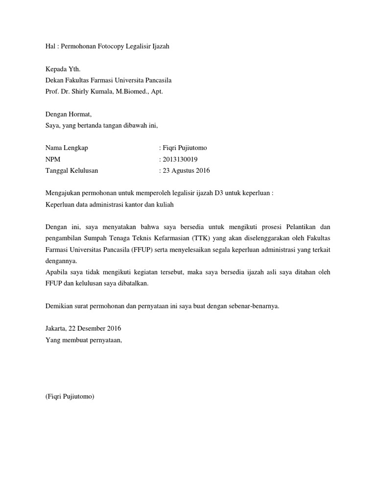 Surat Permohonan Legalisir Ijazah Doc