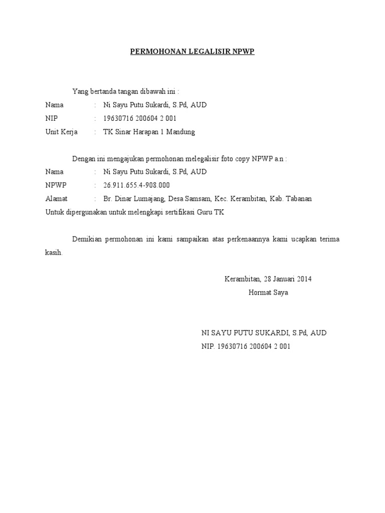 Permohonan Legalisir Npwp Doc Document