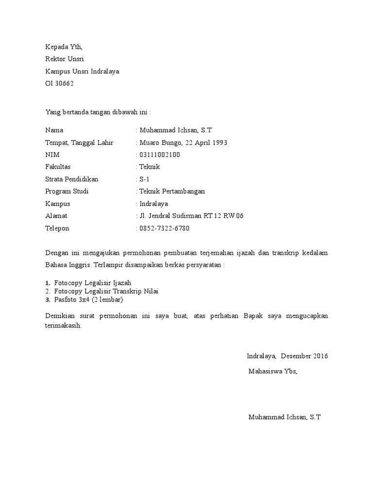 Contoh Surat Permohonan Legalisir Dokumen Dalam Bahasa Inggris